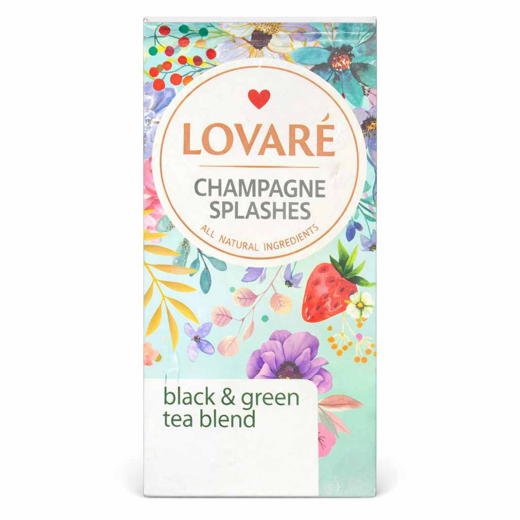 LOVARÉ Champagne Splashes – Black & Green Tea Blend (80g Box)